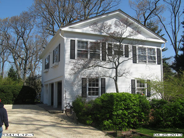 Comment: The core house appears to be a Colonial Revival with Greek Revival elements including a pediment entrance with Ionic columns. The flanking additions appear to have been added later.